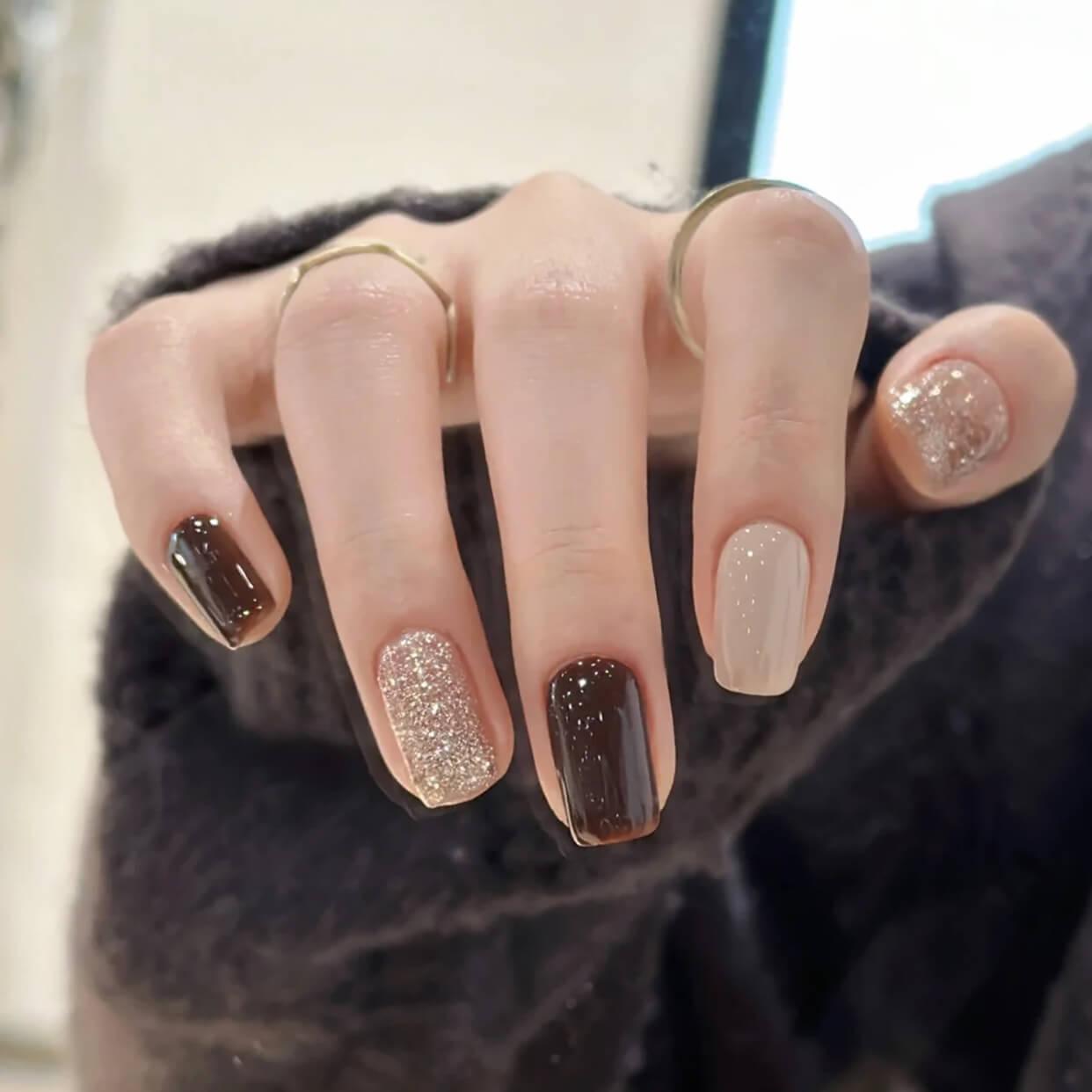 美拉德棕色 咖啡跳色美甲