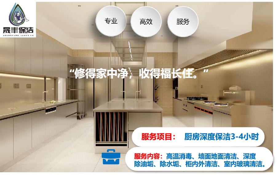 1、服务内容:高温消毒、墙面地面清洁、深度除油垢、除水垢、柜内外清洁、室内玻璃清洁。 2、服务时长:面积≤10㎡,3-4小时。 3、本服务不含项目:室外玻璃清洁、排气扇清洗、搭建家具移位清理、电器设备清洗;工艺品、玉器、古董字画、宗教陈设、花草绿植、天花板清洁高空作业;物品整理不含收纳、灯具拆卸清洁(除落地灯、表面清洁)、衣服鞋子清洗。