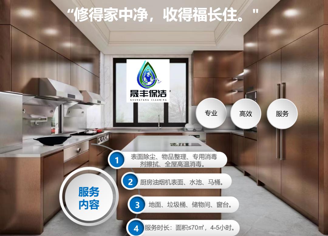 1、服务内容:表面除尘、物品整理、专用消毒剂擦拭、全屋高温消毒。(厨房、卫生间、客厅、卧室、餐厅、阳台)。 2、服务时长:面积≤70㎡,4-5小时。 3、本服务不含项目:餐具刀具茶具消毒、玻璃清洁、排气扇清洗、搭建家具移位清理、电器设备清洗;工艺品、玉器、古董字画、宗教陈设、花草绿植、天花板清洁、高空作业;物品整理不含收纳、灯具拆卸清洁(除落地灯、表面清洁)、衣服鞋子清洗。