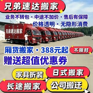 日式搬家(不动手搬新家) 解放双手/搬家无烦恼/轻松搬新家/中途不加价 师傅培训后上岗服务,多年日式搬家经... 240 元/立方米 好兄弟搬家 已售11 好评100% 最快上门 1小时